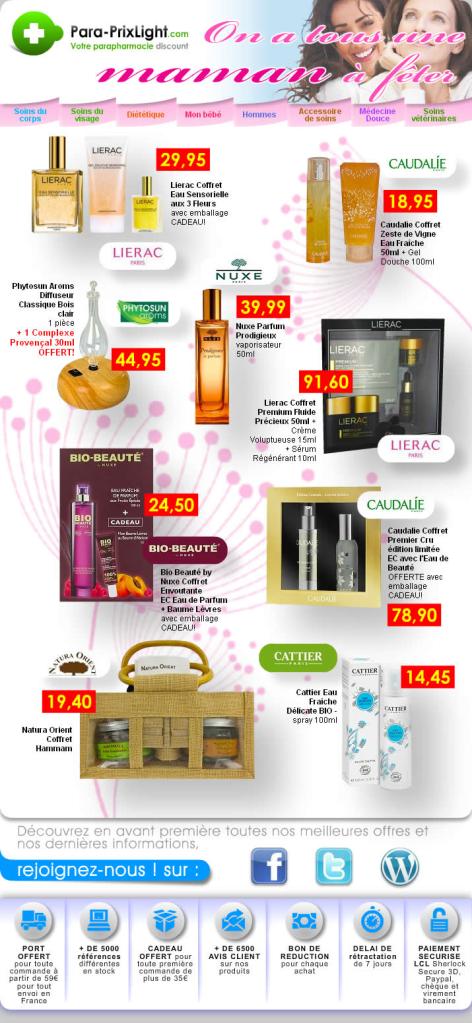 Découvrez de nombreuses idées cadeaux sur Para-PrixLight : des coffrets cadeaux prêts à offrir, des parfums subtils (Nuxe, Caudalie, Cattier, etc), des diffuseurs d’huiles essentielles, etc…