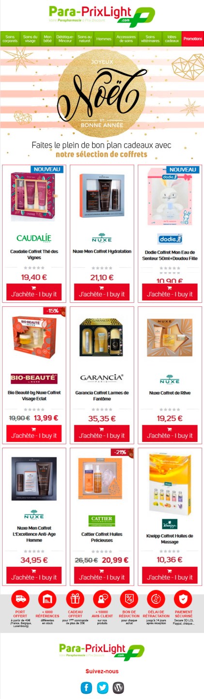 Découvrez nos coffrets CADEAU Caudalie, Nuxe, Garancia, Sampar, Dodie, Cattier, Nuxe Men, Kneipp, Bio Beauté by Nuxe, Lierac, etc aux meilleurs prix en cliquant ICI : https://www.para-prixlight.com/cadeaux-de-noel-2017.html