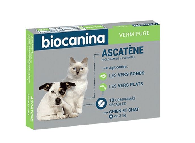 100 mg de niclosamide et 7,23 mg de pyrantel par kg de poids corporel, par voie orale en une administration, correspondant à 1 comprimé pour 4 kg de poids corporel.